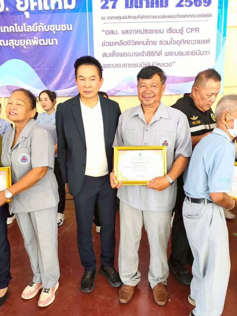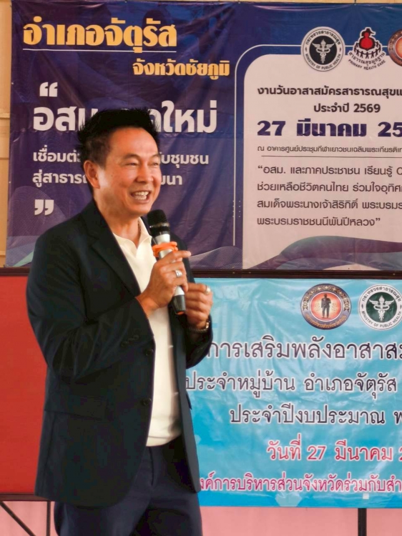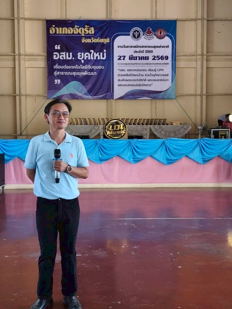 นายอรรถวีร์ อุระวัฒนพันธุ์ นายกเทศมนตรีตำบลจัตุรัส ผู้อำนวยการกองสาธารณสุขและสิ่งแวดล้อมรักษาราชการแทนปลัดเทศบาลตำบลจัตุรัส ร่วมงานวันอาสาสมัครสาธารณสุขแห่งชาติประจำปี 2569 ณ อาคารศูนย์ประชุมกีฬาเยาวชนเฉลิมพระเกียรติเทศบาลตำบลจัตุรัส