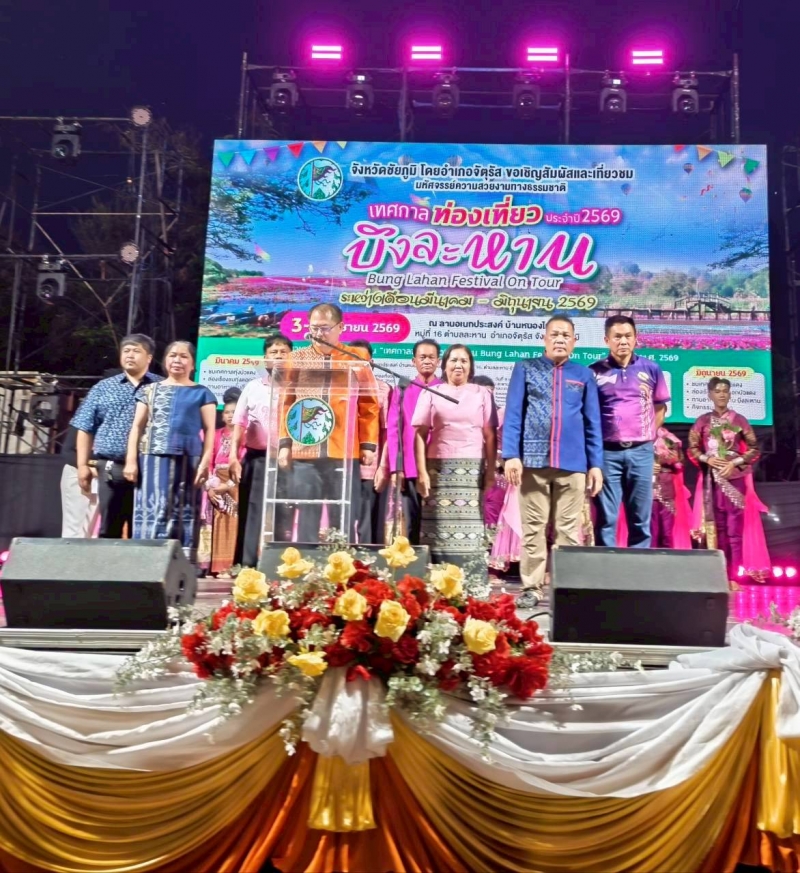 นายอรรถวีร์ อุระวัฒนพันธุ์ นายกเทศมนตรีตำบลจัตุรัส นายสุรศักดิ์ ชำนาญกุล รองนายกเทศมนตรีตำบลจัตุรัส สมาชิกสภาเทศบาลตำบลจัตุรัส ผู้อำนวยการกองสาธารณสุขและสิ่งแวดล้อมรักษาราชการแทนปลัดเทศบาลตำบลจัตุรัส พร้อมเจ้าหน้าที่และพนักงานเทศบาลตำบลจัตุรัส ร่วมงานพิธีเปิดเทศกาลท่องเที่ยวบึงละหาน Bung lahan festival on tour ประจำปีพ.ศ 2569 เพื่อเป็นการส่งเสริมการท่องเที่ยวเชิงอนุรักษ์และประชาสัมพันธ์แหล่งท่องเที่ยวของจังหวัดชัยภูมิ ให้เป็นที่ทราบกันอย่างแพร่หลาย อีกทั้งเป็นการส่งเสริมให้ประชาชนในท้องที่มีรายได้เพิ่มขึ้นจากการท่องเที่ยวและพัฒนาคุณภาพชีวิตควบคู่กับการอนุรักษ์ธรรมชาติ ณ ลานอเนกประสงค์บ้านหนองไผ่งามหมู่ 16 ตำบลละหารอำเภอจัตุรัส จังหวัดชัยภูมิ