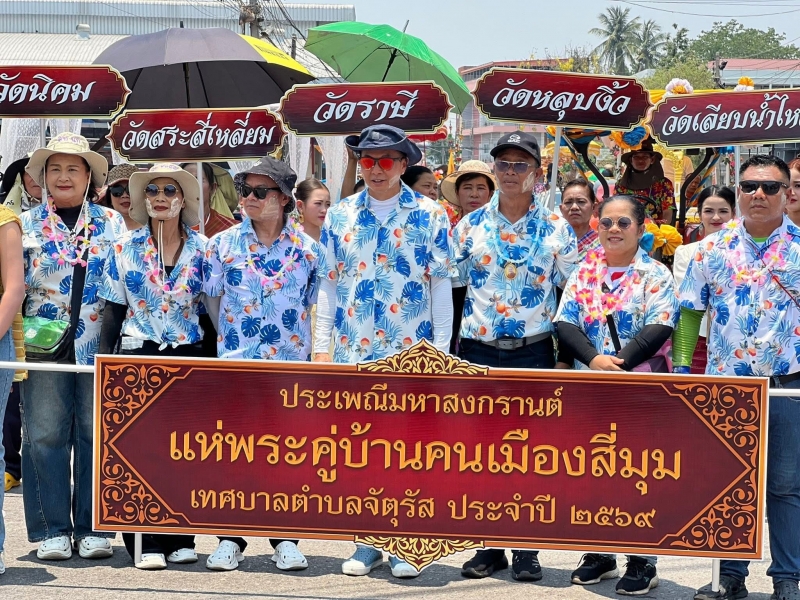 นายอรรถวีร์ อุระวัฒนพันธุ์ นายกเทศมนตรีตำบลจัตุรัส คณะผู้บริหาร ประธานสภาเทศบาลตำบลจัตุรัส รองประธานสภาเทศบาลตำบลจัตุรัส ที่ปรึกษาสภาเทศบาลตำบลจัตุรัส สมาชิกสภาเทศบาลตำบลจัตุรัส เจ้าหน้าที่และพนักงานเทศบาลตำบลจัตุรัส ร่วมกันจัดงานพิธีงานประเพณีมหาสงกรานต์แห่พระคู่บ้านคนเมืองสี่มุมและงานวันผู้สูงอายุ