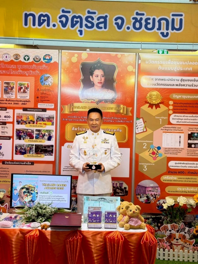 สำนักงานเทศบาลตำบลจัตุรัสได้รับรางวัลชนะเลิศ "Thailand Rabies Awards 2025" ภายใต้โครงการ สัตว์ปลอดโรค คนปลอดภัย จากโรคพิษสุนัขบ้า ตามปณิธาน ศาสตราจารย์ ดร. สมเด็จพระเจ้าน้องนางเธอ เจ้าฟ้าจุฬาภรณวลัยลักษณ์ อัครราชกุมารี กรมพระศรีสวางควัฒน วรขัตติยราชนารี ในวันที่ 28 กันยายน พ.ศ. 2568