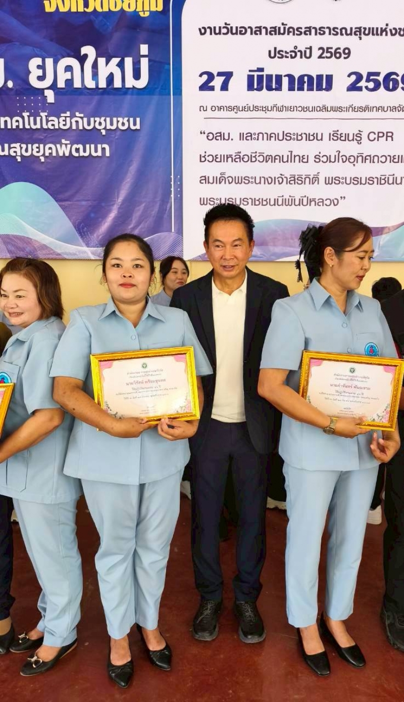 นายอรรถวีร์ อุระวัฒนพันธุ์ นายกเทศมนตรีตำบลจัตุรัส ผู้อำนวยการกองสาธารณสุขและสิ่งแวดล้อมรักษาราชการแทนปลัดเทศบาลตำบลจัตุรัส ร่วมงานวันอาสาสมัครสาธารณสุขแห่งชาติประจำปี 2569 ณ อาคารศูนย์ประชุมกีฬาเยาวชนเฉลิมพระเกียรติเทศบาลตำบลจัตุรัส