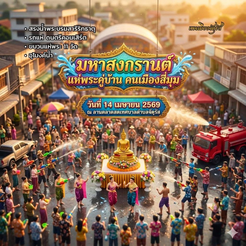 ร่วมสืบสานงานประเพณีมหาสงกรานต์แห่พระคู่บ้านคนเมืองสี่มุม